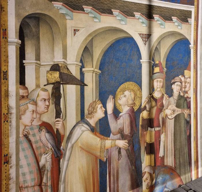 La ragione di tanta visibilità è presto spiegata. Assisi nel primo Trecento fu la vetrina della grande storia, il palcoscenico scelto a estrema dimora da ambiziosi cardinali che avevano svolto un ruolo di rilievo con i pontefici lontani dalla penisola e l’Italia dilaniata nello scontro tra Angioini e Aragonesi dopo i Vespri Siciliani. In particolare Gentile da Montefiore, frate minore nominato cardinale sotto il titolo dei Santi Silvestro e Martino ai Monti, fu artefice di un intenso sforzo diplomatico per risolvere pacificamente la successione al trono di Ungheria dopo la morte violenta di Ladislao IV avvenuta nel 1290. La consorte di Ladislao, Elisabetta di Sicilia figlia di Carlo I d’Angiò, non aveva messo al mondo figli e alla morte del consorte si era fatta suora. Il trono d’Ungheria fu allora rivendicato dalla figlia di Stefano V d’Ungheria, Maria, moglie di Carlo II d’Angiò, per il figlio primogenito Carlo Martello, e alla morte di questi per il nipote Caroberto. La contesa tra la regina di Napoli e la nobiltà magiara fu vinta dalla prima grazie all’astuzia diplomatica di Gentile da Montefiore, che aveva raggiunto nel 1307 l’Ungheria come legato papale di Clemente V: fu grazie alla sua intermediazione che Caroberto d’Angiò venne acclamato l’anno seguente re di Ungheria. Nel frattempo un altro figlio di Maria, Ludovico, si era fatto frate Minore, aprendo la successione del trono napoletano al fratello Roberto, come avverrà dopo la morte di Carlo II detto lo zoppo avvenuta nel 1309.