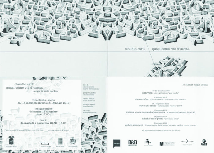 L’arte è una via d’uscita dalle angustie e dai mali che sopportiamo nel vedere il mondo scorrerci davanti? «Quasi», rispondono Claudio e il curatore della personale di Villa Fidelia nel 2009, Paolo Nardon. Questo «quasi» è il limite e la forza delle utopie di cui «l’arte è la metafora più lampante e potente».