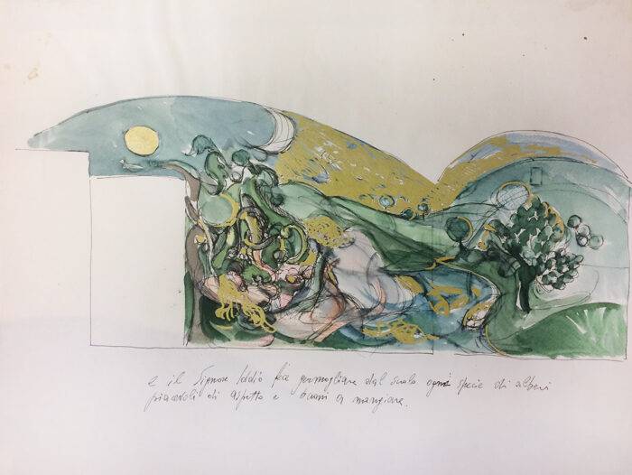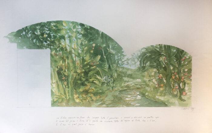 In una lettera, poi riportata in Quaestio 98. Nudi senza vergogna (Milano, Camunia, 1994) Adriana scriveva a Claudio: «È un romanzo teologico col mitico giardino costantemente sullo sfondo (…) tutto sarà di nuovo Eden: le mie piante, le mie bestie, la mia casa ‘inventata e vissuta’ stando al tuo dire, ‘come un angolo di Paradiso terrestre’. E hai detto bene perché potando gli alberi e coltivando l’orto ho sempre avuto la sensazione di coltivare il mitico giardino: di costruirlo qui in questa terra di peccato, come un ricordo ed un presagio, una memoria antica ed una nuova profezia. Scusami Claudio se ho mescolato troppo le mie vicende teologiche e narrative – che poi sono vicende esistenziali, tanto la narrazione ci coinvolge – con figurazioni della tua pittura. Forse tu stesso mi hai messo su questa strada rilevando l’ambientazione della tua opera nello spazio ritmato e scolpito della mia abitazione».